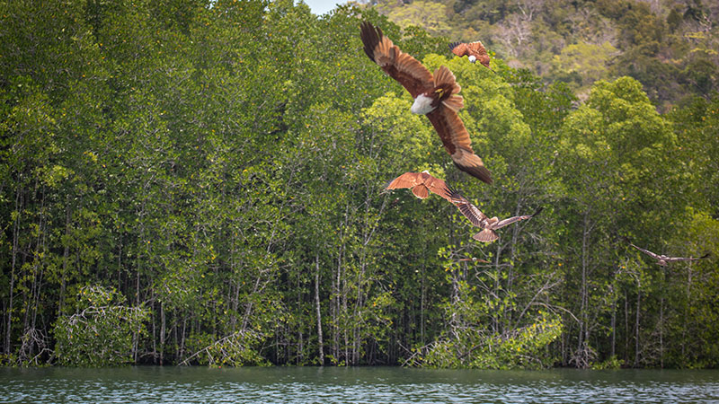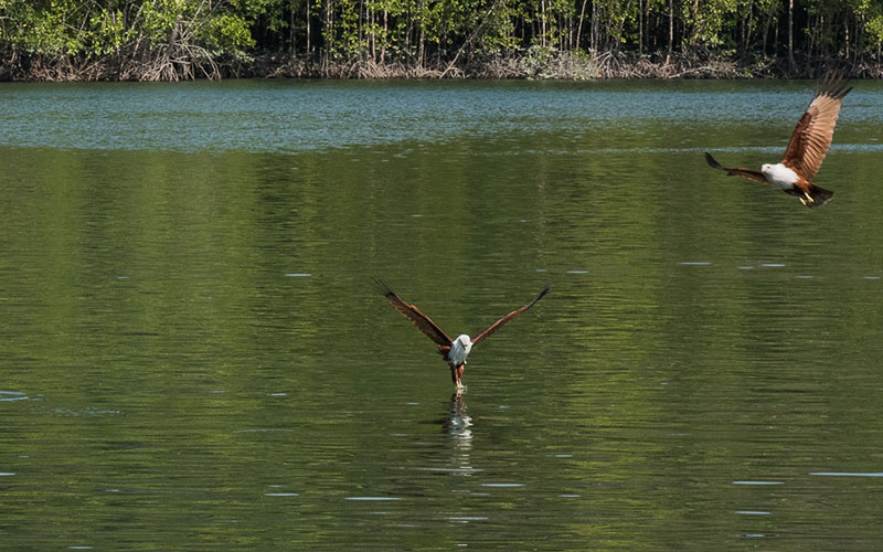 Cruising around the mangrove trails along the calm and gentle river, you will find amazing underwater ecosystems and flora, as well as mangrove plantation, eagle, and macaque.